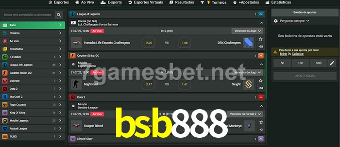 O bsb888 oferece uma grande seleção de opções de apostas em e-sports com probabilidades competitivas